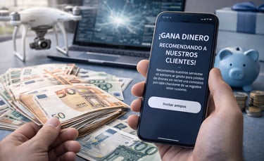 Muy sencillo si nos recomiendas y nuestro cliente te menciona te llevas un 5% del valor neto de la factura.